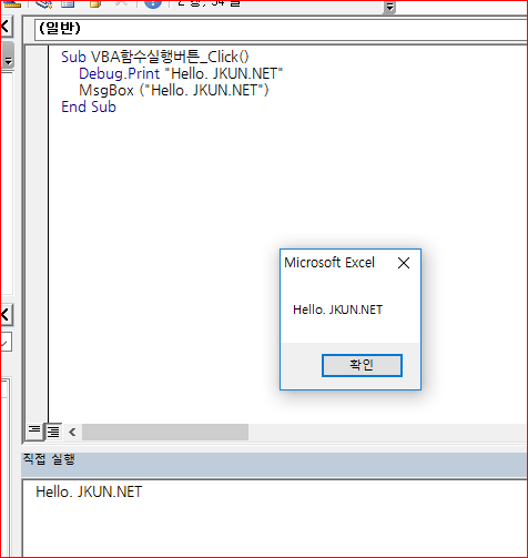 이렇게 위와 같은 과정을 통해 VBA 에서 버튼(도형) 을 생성하여 이벤트까지 연결하는 예제까지