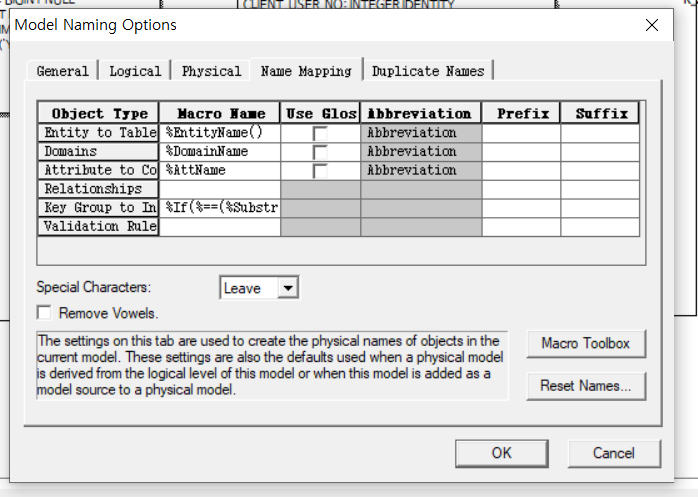 ERWIN 으로 데이터베이스 모델링을 할때 필요로 했던 설정이다.
