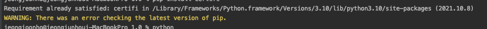Requirement already satisfied: certifi in /Library/Frameworks/Python.framework/Versions/3.10/lib/python3.10/site-packages (2021.10.8)