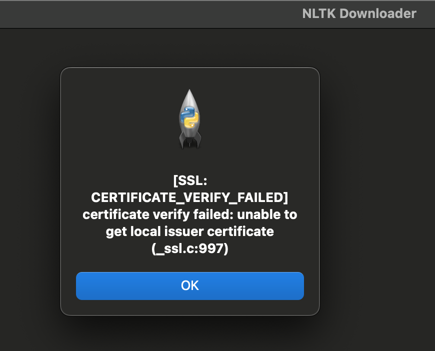 [SSL: CERTIFICATE_VERIFY_FAILED] certificate verify failed: unable to get local issuer certificate
