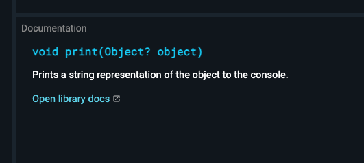 그리고 정말 마음에 드는 기능인데 코드에 커서를 놓으면 Documentation 이 작동한다는 것 이다.