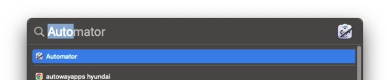 1. 스포트라이트 (Sportlight) 로 Automator 를 검색한다.